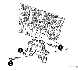 5. Install transmission bracket (2) and bolts (1), (3) to transmission housing. Hand tighten bolts.