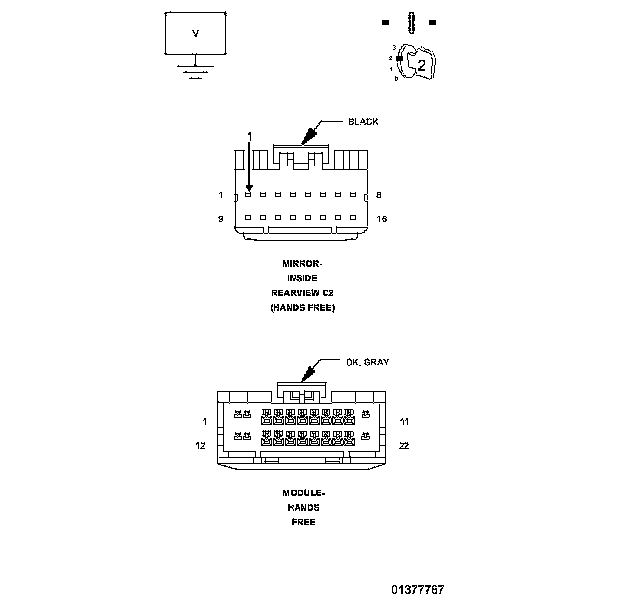 2. Measure the resistance of the (X712) Microphone 1 IN (+) circuit between the HFM connector and the inside rearview mirror connector.