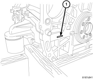 4. Remove ladder frame using pry point cast in the rear of the block (1).