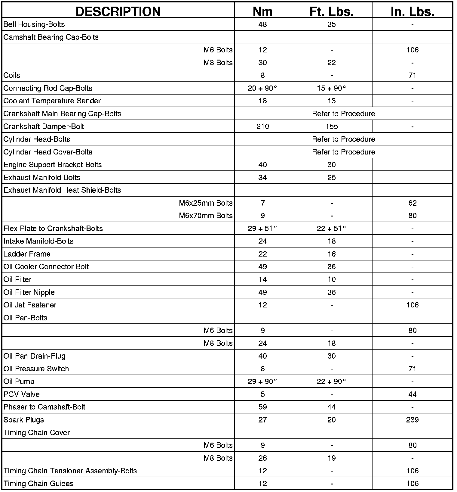 Engine Torque Specifications
