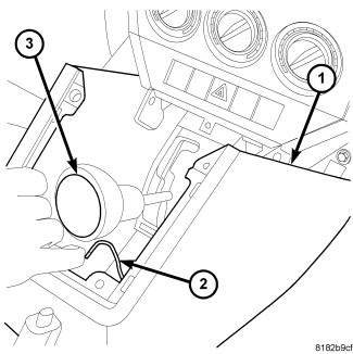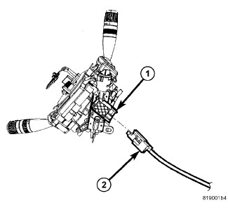 9. With the ignition switch in the ON position, push the interlock cable (2) into the column (1) until it clicks into place.