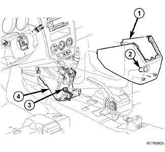 5. Place console housing (1) over shifter lever ensuring console tabs seat properly.