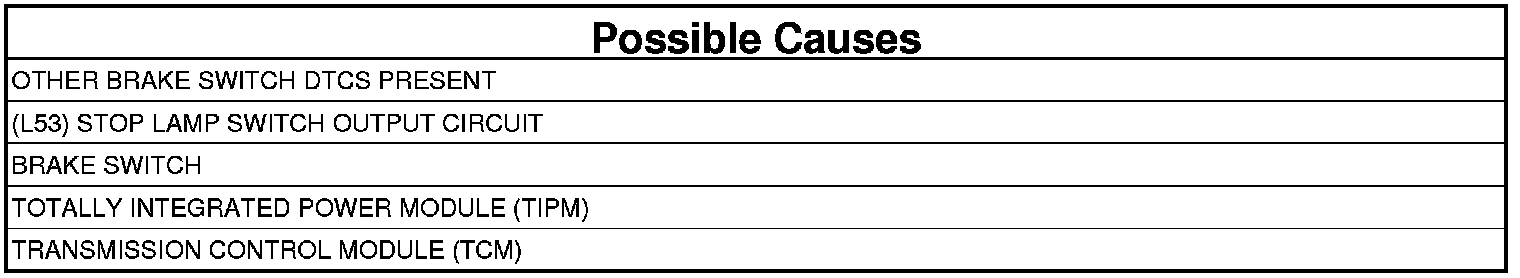 - Check the (L53) Stop Lamp switch output circuit between the brake switch and the TIPM for an open or short to ground.