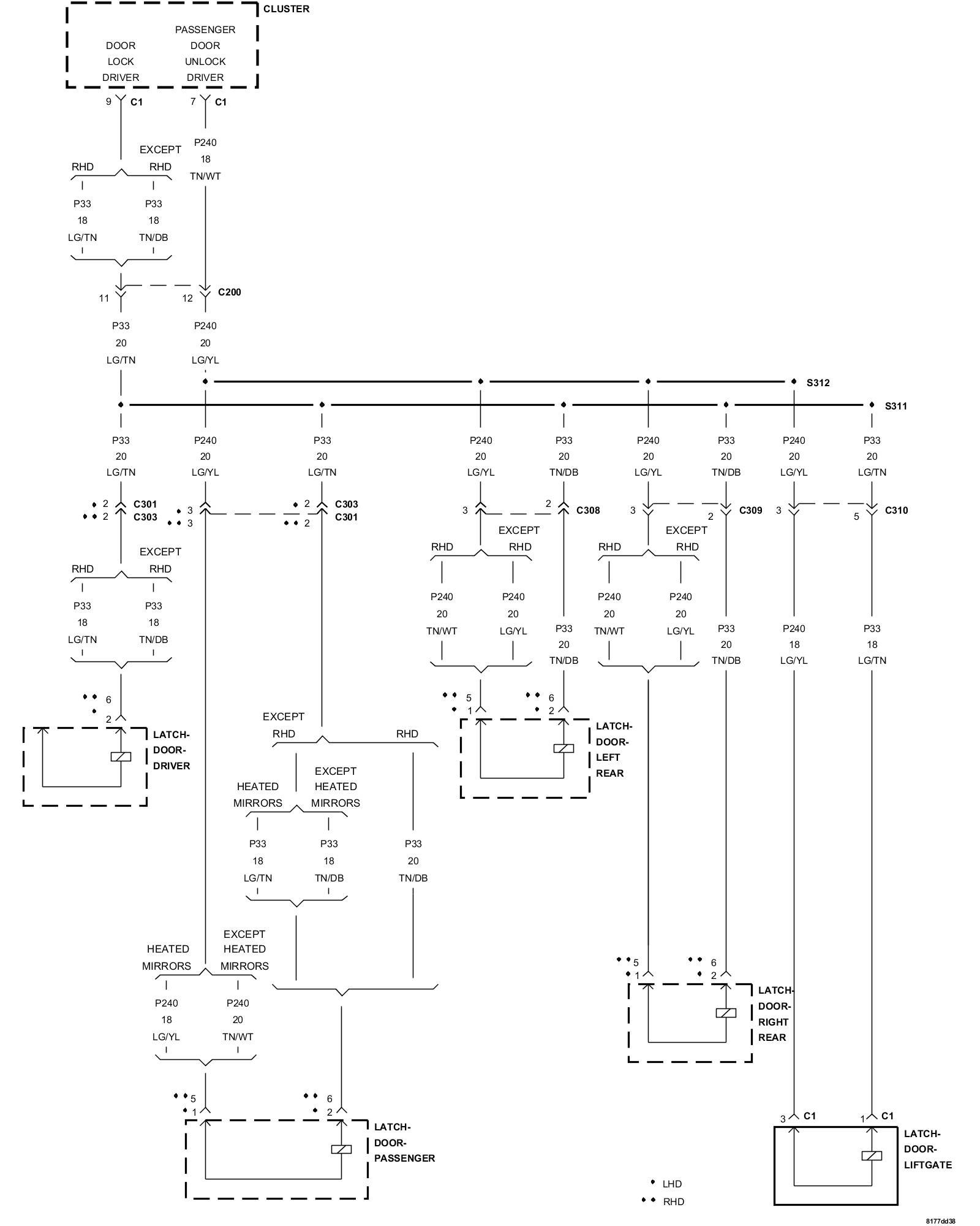 - Repair the (P33) Door Lock Driver or the (P240) Passenger Doors Unlock Driver circuit for an open.