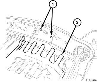 10. Install the push-pin fasteners (2) and connect the J-straps (1).