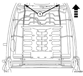 2. Place lumbar mat onto seat back frame and insert the upper support wires (1) into the frame.