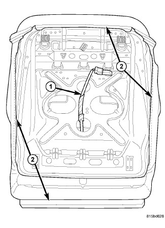 3. Release the seat cushion cover J-straps (2) from the seat pan and remove the cushion from the pan.