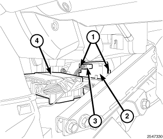 NOTE: The Occupancy Restraint Module (ORC) (4) is directly behind the vehicle dynamics sensor (2). Care must be taken while working near the ORC to avoid jostling or bumping the module.