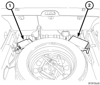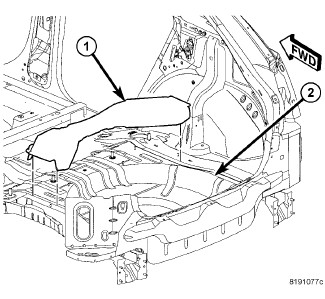 11. If equipped, install the satellite receiver (1) or amplifier (2) to rear floor pan.