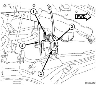 4. Position the wheel speed sensor (3) and install the routing clip (1) fastening the sensor to the trailing link (2).