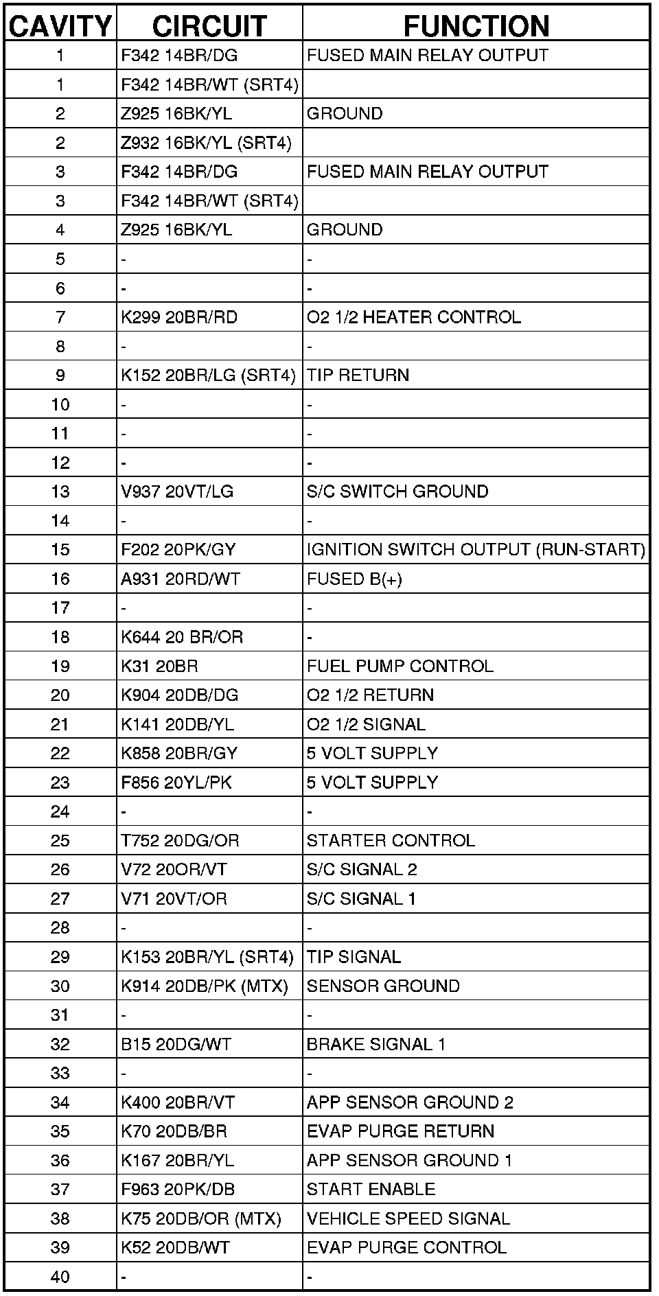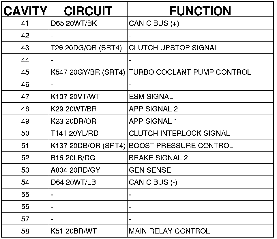 Powertrain Control Module C1 (Engine Compartment) 58 Way