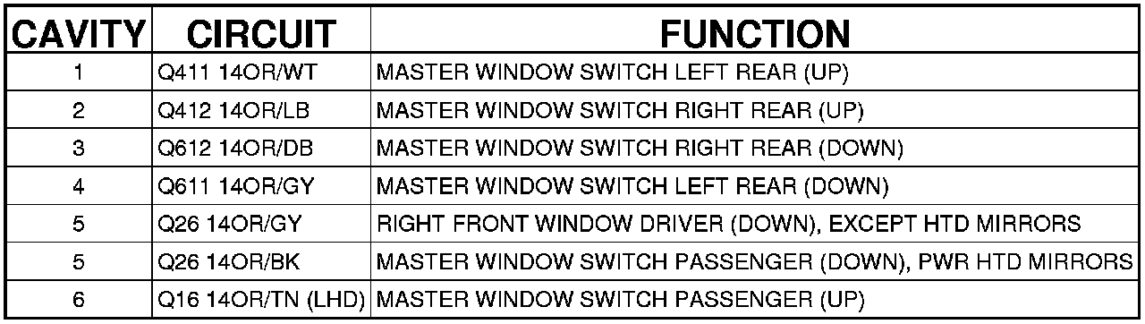 Connector C1 - (LEFT/RIGHT FRONT DOOR) 6 WAY