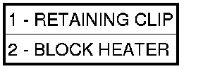 Remove retaining clip (1). Remove block heater assembly (2).