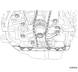 8. Install timing chain cover upper retaining bolts and tighten M6 bolts to 9 Nm (80 in. lbs.) and M8 bolts to 26 Nm (230 in. lbs.).