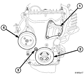 17. Install water pump pulley (4) and tighten three bolts to 9 Nm (80 in. lbs.).