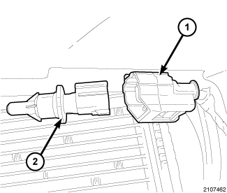 1. Connect the wire harness connector (1) to the ambient temperature sensor (2).