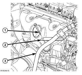 5. Install the return tube (1) at the gear (3). Tighten the tube nut to 20 Nm (15 ft. lbs.).