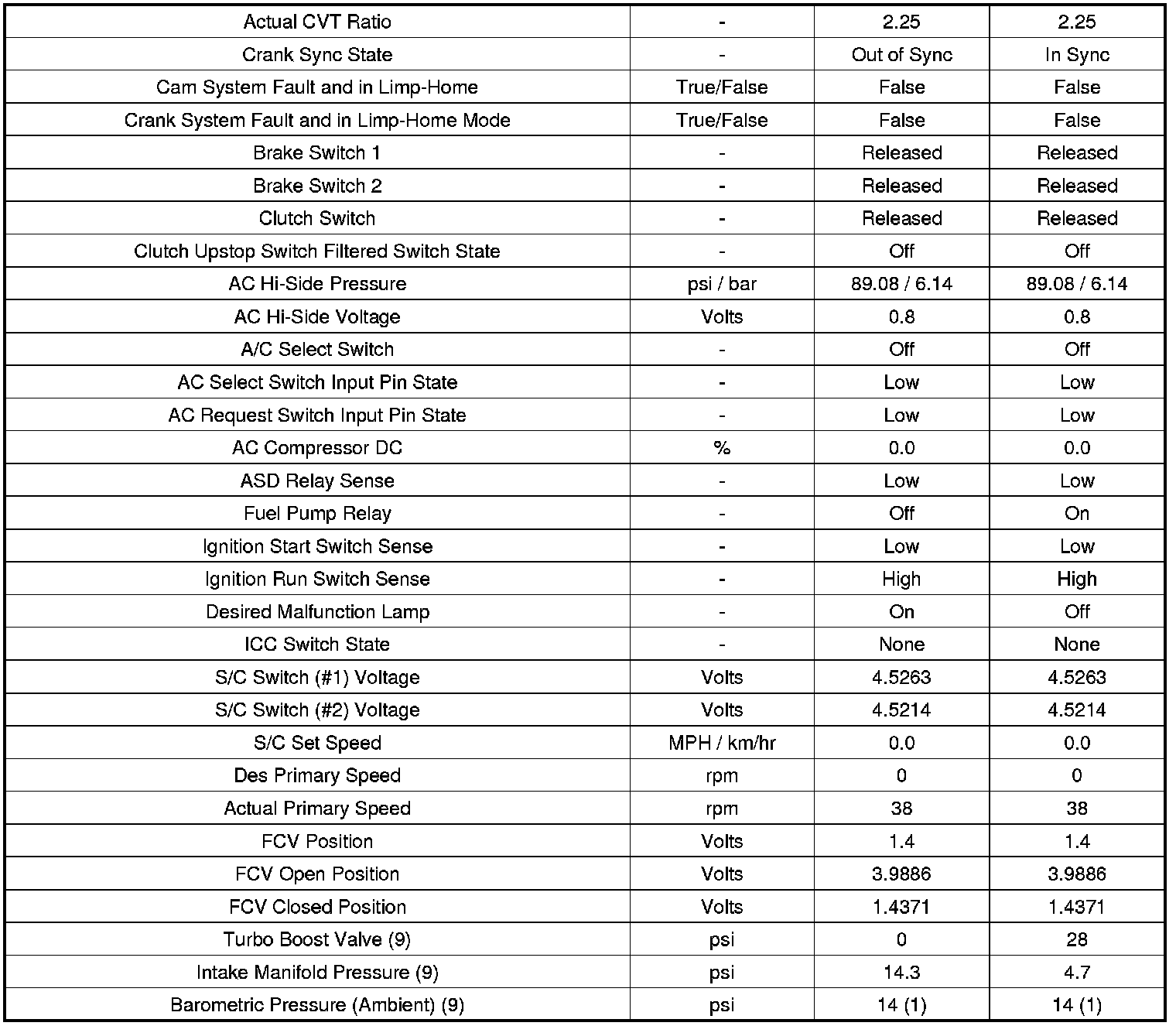 - SRT4 Only. Values located in EBG Scan Tool Data List.