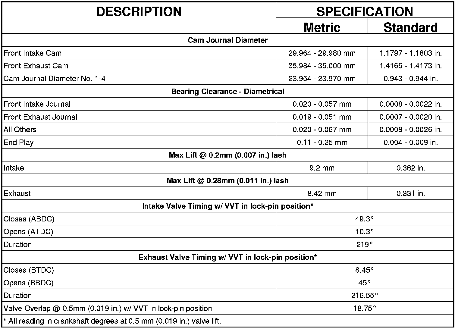 CYLINDER HEAD CAMSHAFT BEARING BORE DIAMETER
