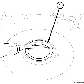 20. Remove converter housing oil seal (1) from converter housing using a screwdriver.