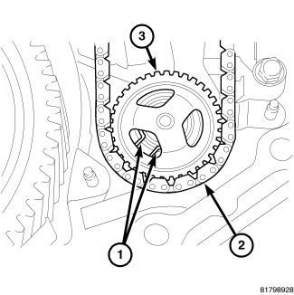 79. Install the Puller 9874 (1) and Insert 8513A (2) onto the secondary sheave (3).