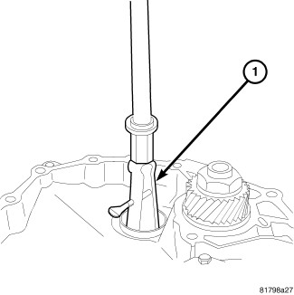 48. Remove and discard the lip seal (1) from the transaxle case.