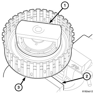 4. Remove the retaining plate (1), the drive and driven plates (3), and the dish plate (2) from the forward clutch drum (4).