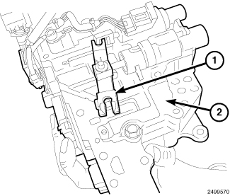 3. This sets the pulley ratio linkage (1) in position on the valve body (2).