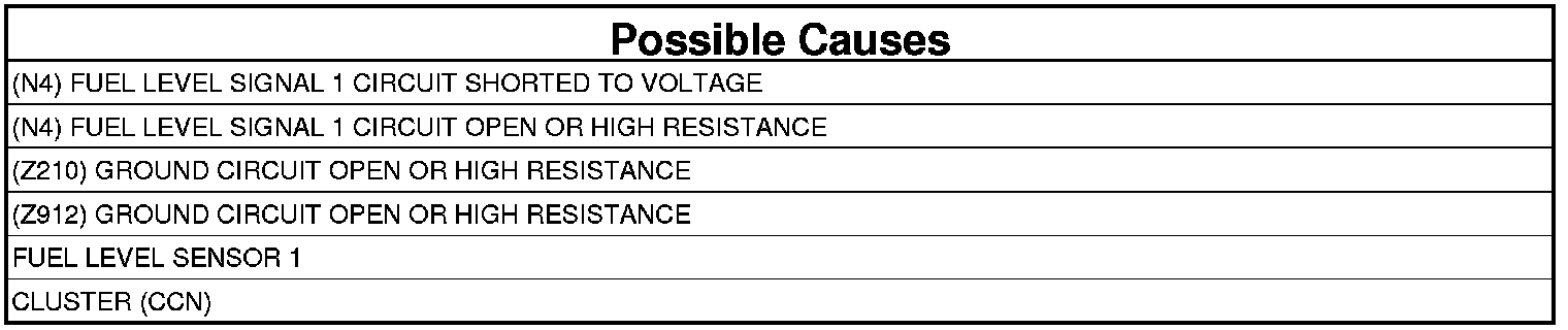 2. (N4) FUEL LEVEL SIGNAL 1 CIRCUIT SHORTED TO VOLTAGE