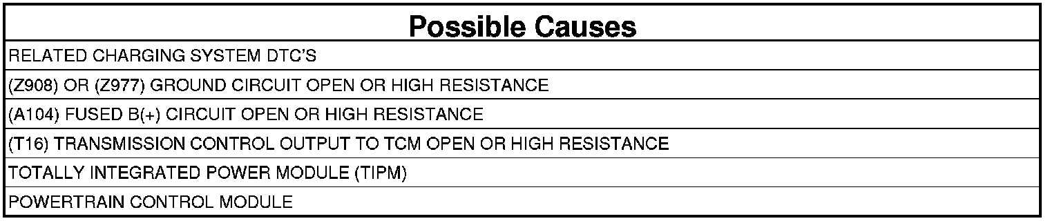 - Charging System and repair any Charging System DTC's before proceeding. After repairing the Charging System, perform the Transmission Verification test to verify the transmission and or controller was not damaged. 42RLE Transmission Verification Test