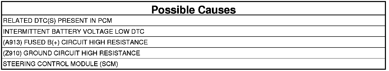 If the voltage to the Steering Control Module (SCCM) is below 8.5 volts for more than one minute.