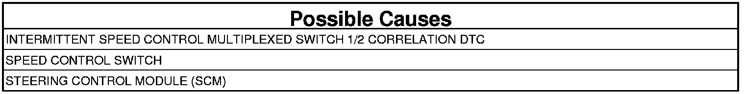 The Steering Control Module (SCM) has detected that a non-permissible combination has occurred in the Speed Control Switch.