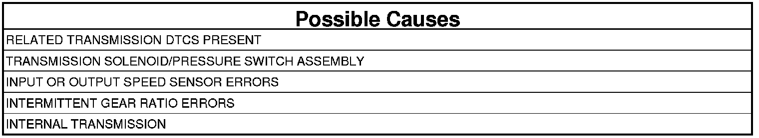 - Refer to appropriate diagnostic procedure in the Transmission category. If any of these DTCs are present, they will cause a gear ratio error. Perform the test for Loss of Prime first if it is present.