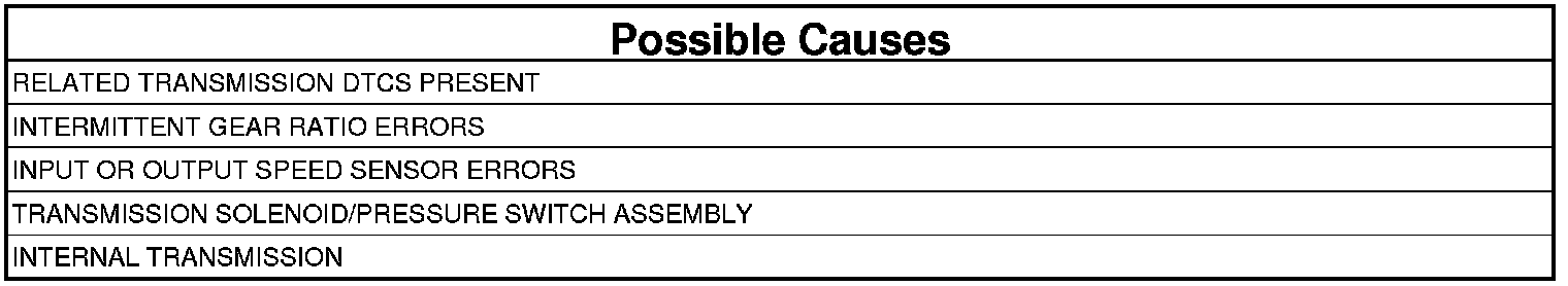 - Refer to appropriate diagnostic procedure in the Transmission category. If any of these DTCs are present, they will cause a gear ratio error. Perform the test for Loss of Prime first if it is present.