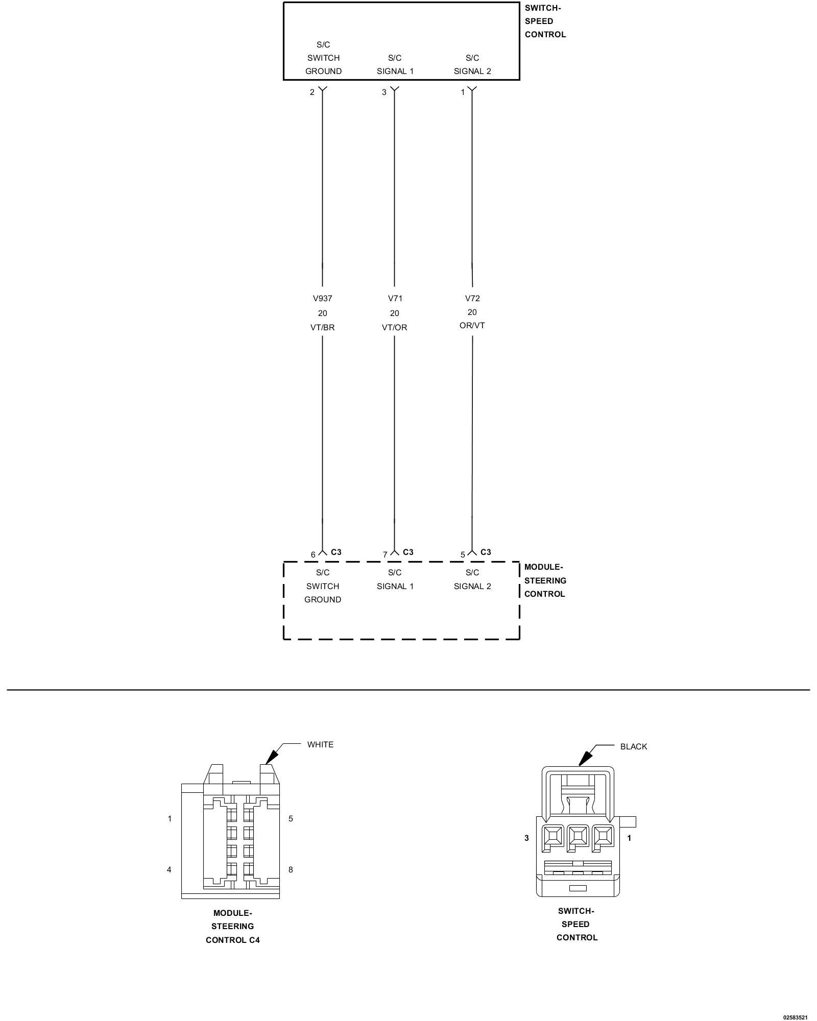 1. Using the wiring diagram/schematic as a guide, inspect the wiring and connectors between the Steering Column Module (SCM) and the Powertrain Control Module (PCM).