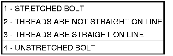 1. Examine connecting rod bolts for stretching (1). Stretching (1) can be checked by holding a scale or straight edge against the threads. If all the threads do not contact the scale the bolt must be replaced.