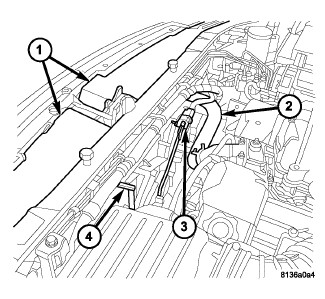 10. Connect the upper radiator hose (2) to the thermostat housing.