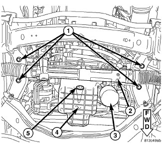 - If equipped with the 42RLE transmission, tighten the four bolts to 75 Nm (55 ft. lbs.).