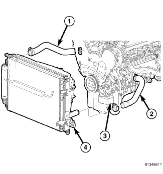 15. Install the upper radiator hose (1).