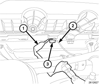 17. Connect the electrical connector to the camshaft position sensor (1).