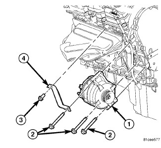 4. Remove generator bracket bolt (3) and remove bracket (4).