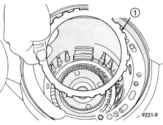 25. Install one low/reverse clutch disc (1).