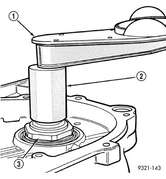 CAUTION: Do not re-use old output shaft nut because the removed stake weakens the nut flange. Using special tools 6497 and 6498A, install new output shaft nut. Tighten new output shaft nut to 200 Nm (147 ft. lbs.).