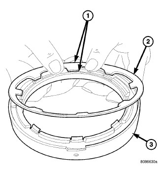 27. Install a new tapered snap ring (2) (tapered side out).