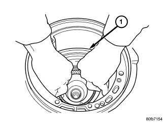 19. Check the turning torque (1) of the output shaft. The shaft should have 1 to 8 in. lbs. of turning torque. If the turning torque is higher than 8 in. lbs., install a thicker shim. If turning torque is less than 1 in. lb., install a thinner shim. Make sure there is no end play.