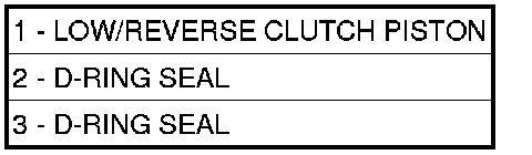 NOTE: The Low/Reverse Clutch Piston has bonded seals which are not individually serviceable. Seal replacement requires replacement of the piston assembly.