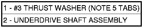 44. Install the number 3 thrust washer (1) to the underdrive shaft assembly (2). Be sure five tabs are seated properly.