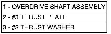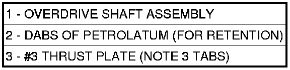 45. Install the number 3 thrust plate (3) to the bottom of the overdrive shaft assembly (1). Retain with petrolatum or transmission assembly gel (2).