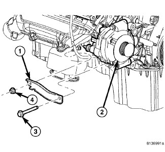 20. Remove the generator (2) and support bracket (1) . Generator - Removal