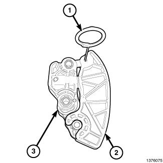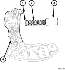 1. Install the washer (1), spring (2), and plunger (3) inside the tensioner body (4).